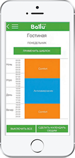 Мобильное приложение работает на базе IOS и Android, а вся техника может быть объединена в единую климатическую домашнюю сеть и быть запрограммирована на удобные пользователю сценарии.